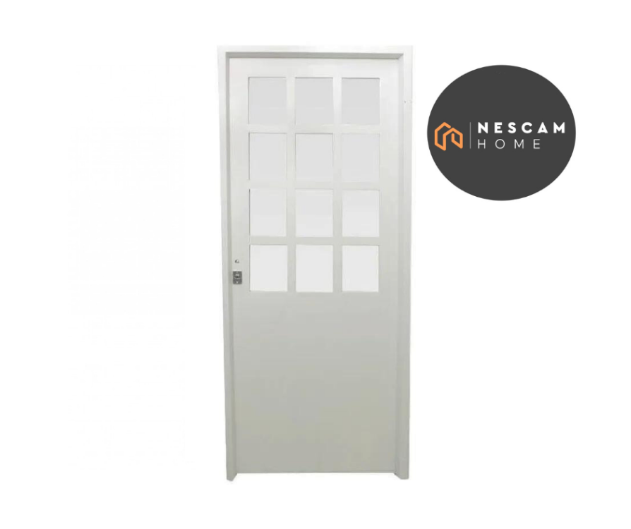 Puerta Exterior 1/2 Vidrio Pesada 0,80x2,00 Linea Esmeralda Espesor de hoja 42mm. Pintura Base blanca. No incluye pintura final. Inyectada en poliuretano. Antioxido c/ cerradura y llave. Sin Picaporte. Bisagras a munición embutidas.