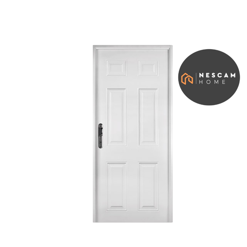 Chapa de acero electrocincado, resistente a la corrosión, inyectada con espuma poliuretánica. Moldura de alta definición. Marco de acero, calibre nº 22. Pintura horneada base. No lleva manijón, ni manija.