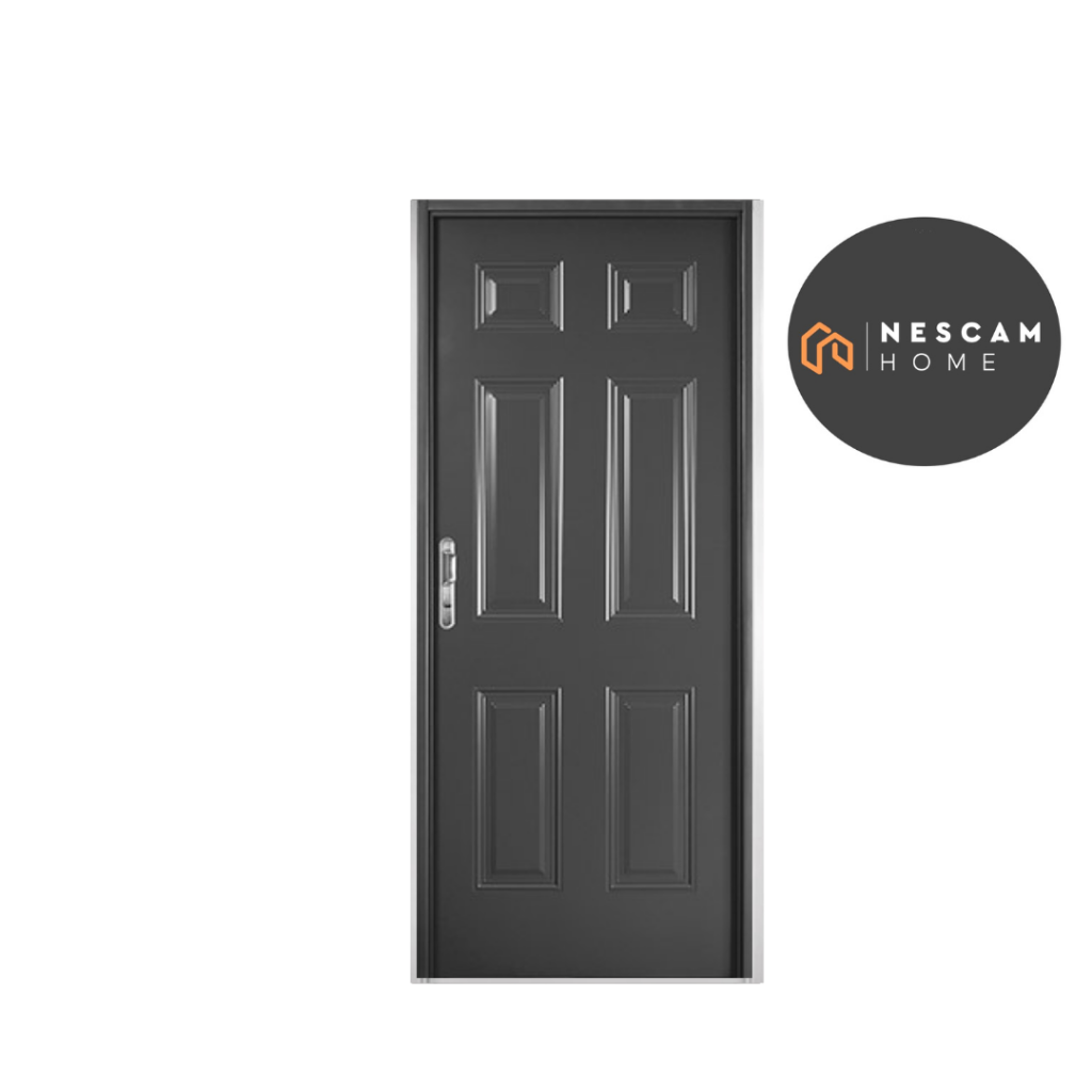 Chapa de acero electrocincado, resistente a la corrosión, inyectada con espuma poliuretánica. Moldura de alta definición. Marco de acero, calibre nº 22. Pintura horneada base. No lleva manijón, ni manija.