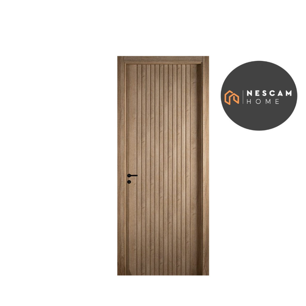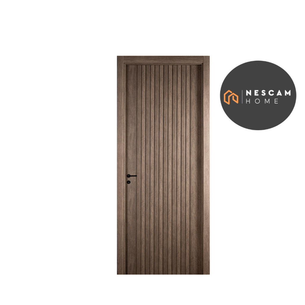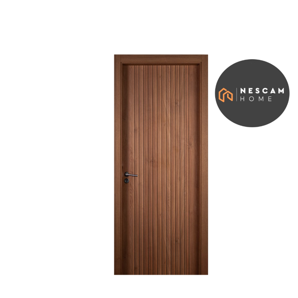 Caras con listones finos de MDF de 12 mm, recubiertas con un foil melamínico con textura simil madera.